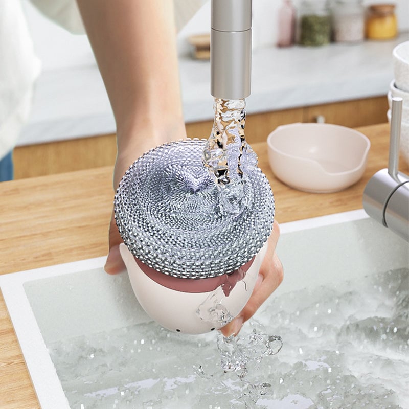 - Poderosa Eliminación de Manchas: Cuenta con un cepillo de lana de acero que elimina fácilmente las manchas difíciles, restaurando la limpieza de tus utensilios de cocina en poco tiempo.