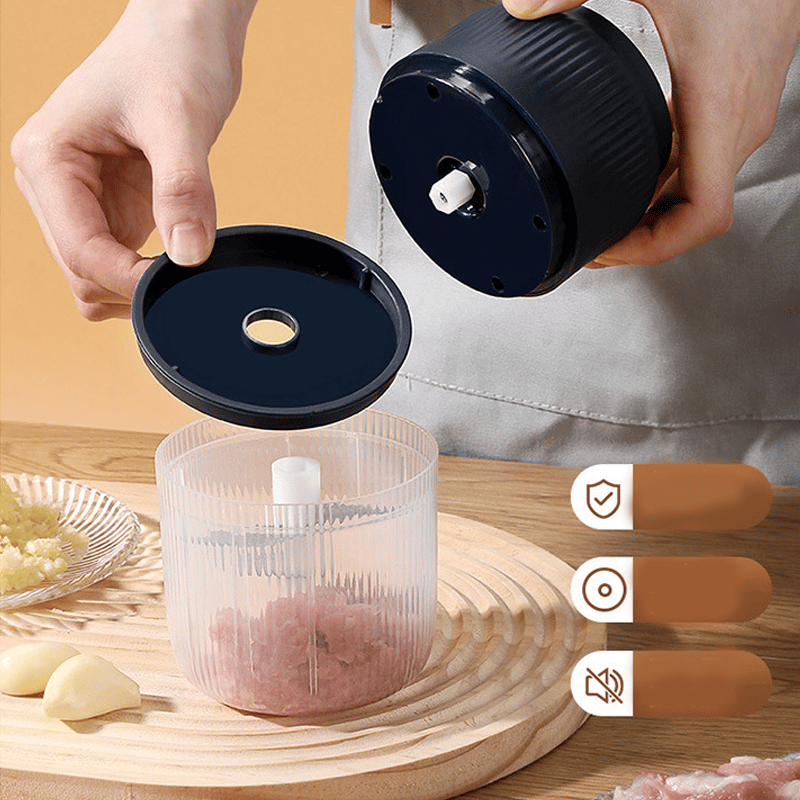 Motor Silencioso y Potente: Motor de cobre puro mejorado que funciona de manera suave y con bajo ruido; operación con un solo toque, se detiene inmediatamente al soltar, procesa eficientemente ajo, comida para bebés, carne picada, batidos y más.