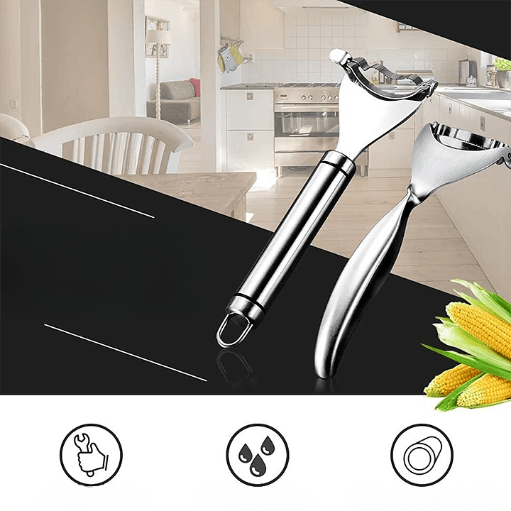 - 🌽Acero Resistente – Fabricado en acero inoxidable duradero, este pelador de maíz es anticorrosión, robusto y duradero.
