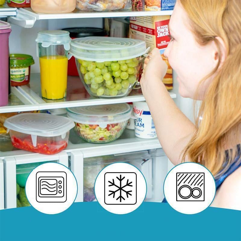 - Juego de tapas más versátil: El set contiene 6 tamaños diferentes para adaptarse a varios recipientes: latas, tazas, ensaladeras, ollas, sartenes, etc.