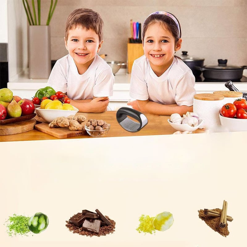 - Fácil de usar: simplemente gira el plato sobre los dientes de ajo varias veces y el ajo queda triturado.