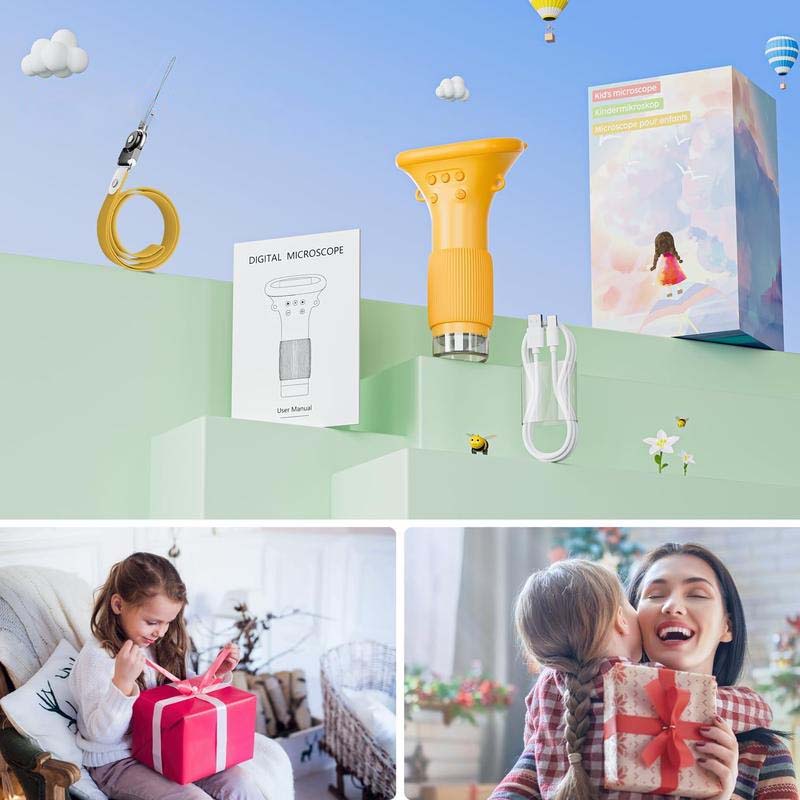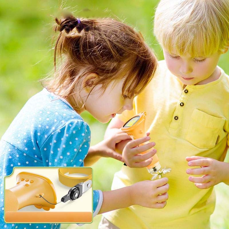 Microscopio Mini Portátil: Incluye un kit de decoración de pantalla desmontable y una cuerda para llevarlo fácilmente al aire libre. Ligero y diseñado para las manos de los niños, agrega diversión a la exploración científica.