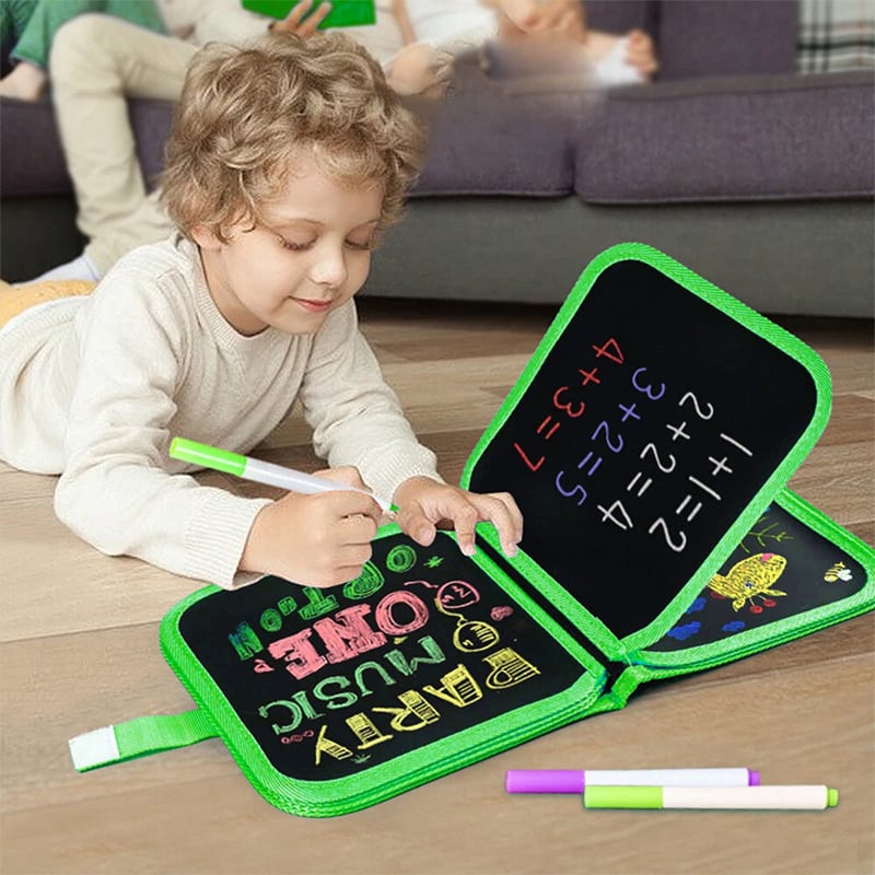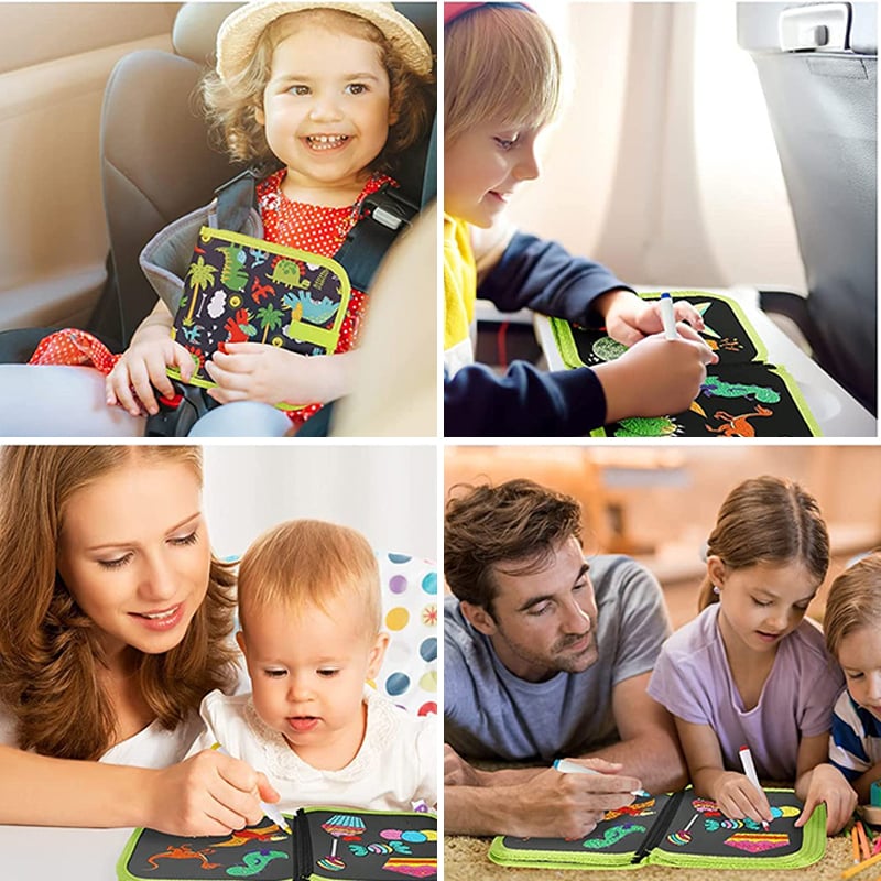 Nuestro Libro de Dibujo Portátil y Borrable es reutilizable y se puede limpiar fácilmente con toallitas húmedas, por lo que no tendrás que preocuparte por los garabatos de tu hijo. Es seguro, fácil de usar y además tiene una guía de imágenes para ayudar a los niños a concentrarse en sus creaciones.