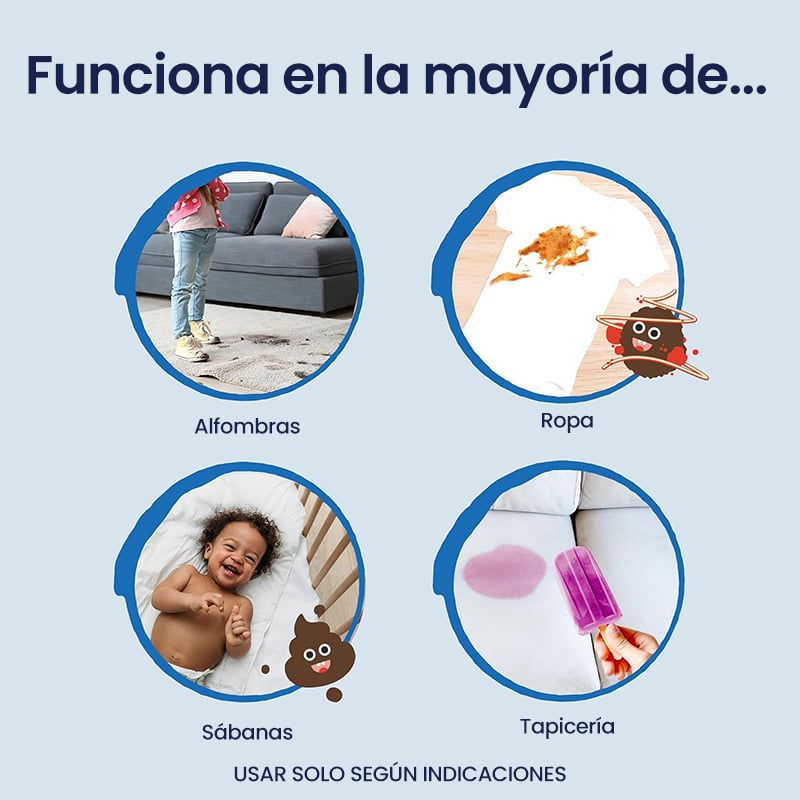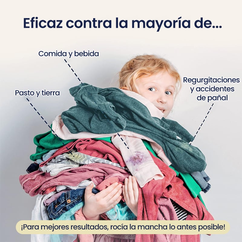 Funciona milagrosamente en las manchas: Este quitamanchas para ropa de bebé es ideal para bebés, niños pequeños y adultos, y es eficaz tanto en manchas frescas como en manchas ya fijadas. Funciona contra jugo de frutas, comida para bebés, fórmula, kétchup, accidentes y hasta sangre.