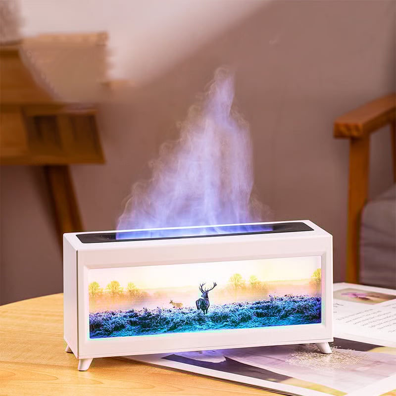 Forma de chimenea y luz de llama: El diseño clásico inspirado en una chimenea presenta un efecto de luz similar a una llama que añade un toque de calidez a cualquier habitación. Este difusor de aromaterapia se integra perfectamente tanto con la decoración tradicional como moderna, creando un ambiente acogedor e invitante.