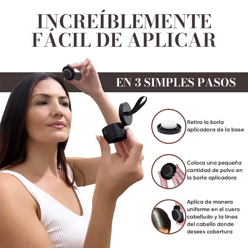 Fácil de aplicar: Usando la esponja aplicadora, aplica el polvo en la zona deseada del cabello.