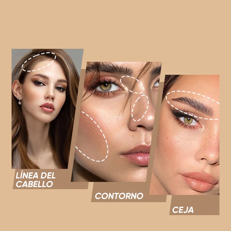 Multifuncional: Puede usarse como corrector de raíces, colorante capilar e incluso como polvo para contorno del cuello y rostro.